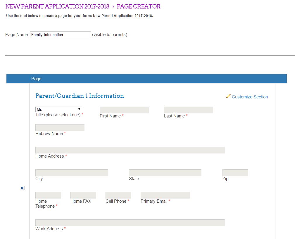 - Create multi-page forms with text inputs, select drop downs, and file-uploads to share with applicants to your school.
